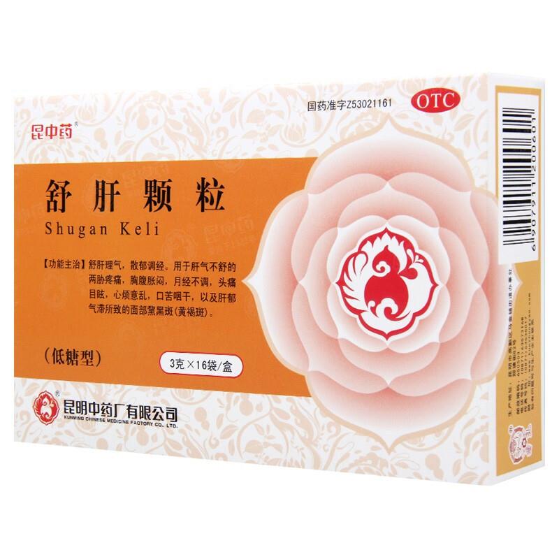 【功能主治】舒肝理气,散郁调经。用于肝气不舒的两胁疼痛,胸腹胀闷,月经不调,头痛目慷,心烦意乱,口苦咽干,以及肝郁气滞所致的面部黎黑斑(黄褐斑)。