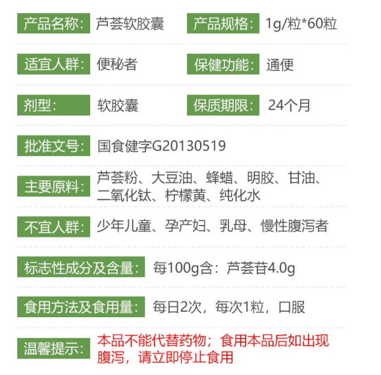 联合邦利牌芦荟软胶囊60粒