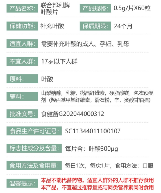 三也真品牌铁叶酸片(健)60片